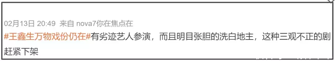 如今,王鑫投案,成为了板上钉钉的劣迹艺人,《生万物》自然也受到了不小的影响。王鑫投案的消息一经传出,网友们就呼吁下架《生万物》,不仅指出该剧有劣迹艺人参演,还对该剧传递的三观产生质疑,认为其明目张胆洗白地主。一时之间,《生万物》成为了“众矢之的”。